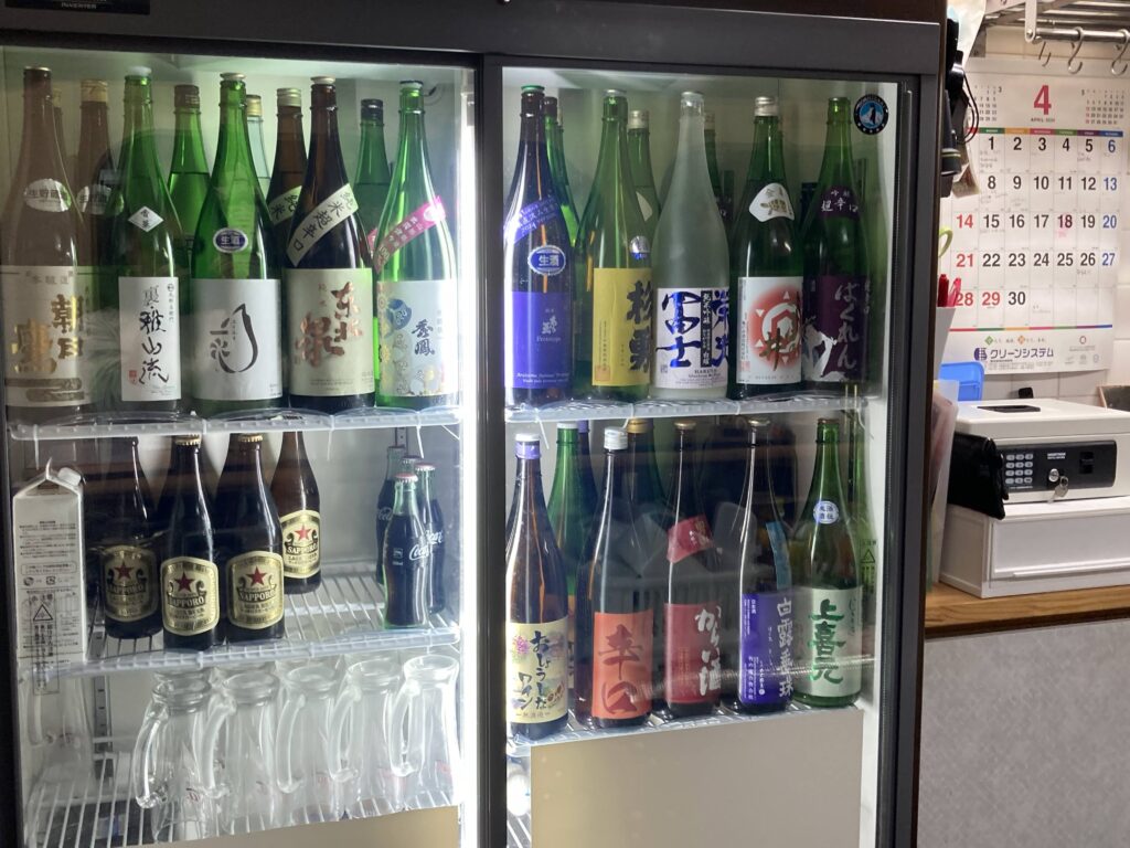 冷蔵庫の日本酒品揃えもいい感じ。しかも500円均一。