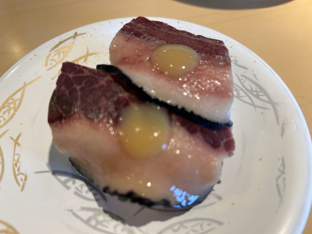 平日は卸や、地元の方の台所を支えているこちら、土日は観光市場としていろいろな催しがある。明日の朝食でもう一度来る予定なので、今日は市場内の回転寿司「唐戸市場寿司」さんへ。