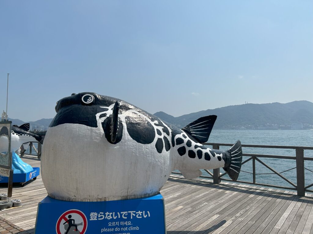 海沿いはデッキになっていて、河豚のオブジェがたくさん。