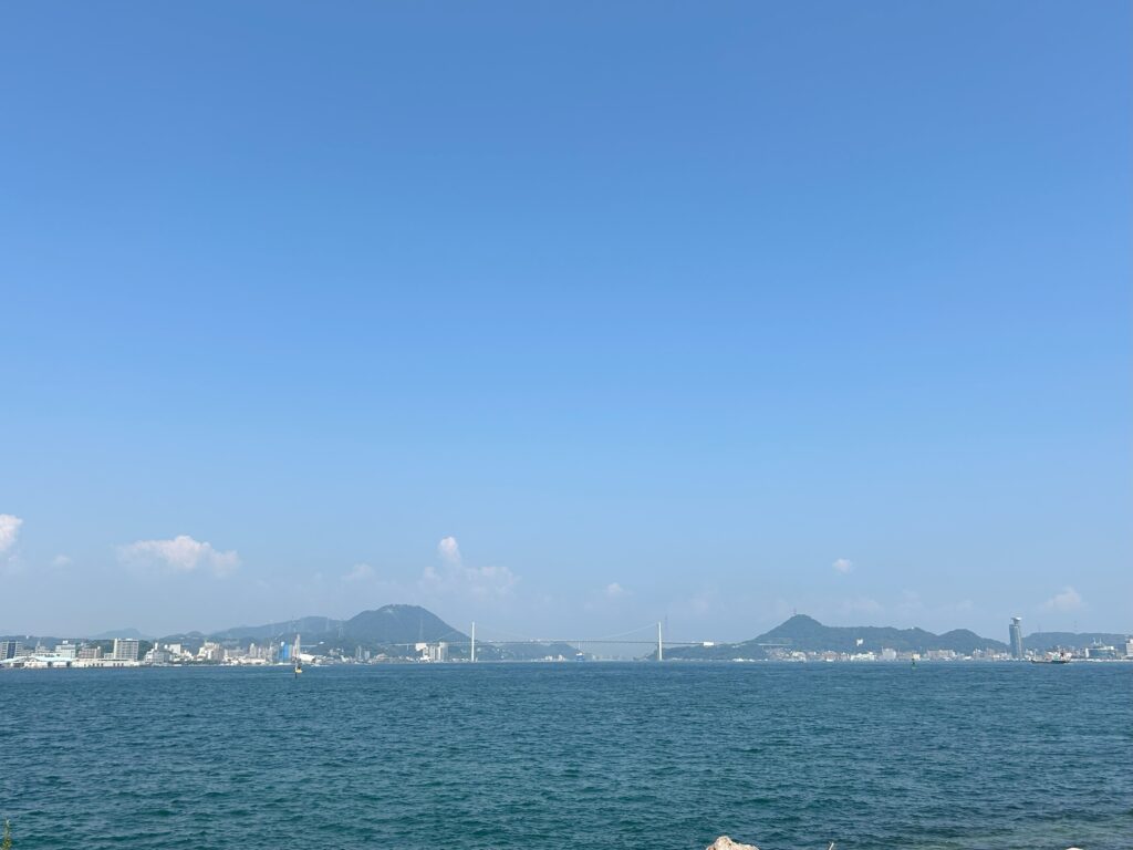 向かって右が福岡県の門司港、左が山口県の下関。海峡の幅は一番狭いところは700mほどで、多い日には1日1,000隻近い船が行きかうのだそう。