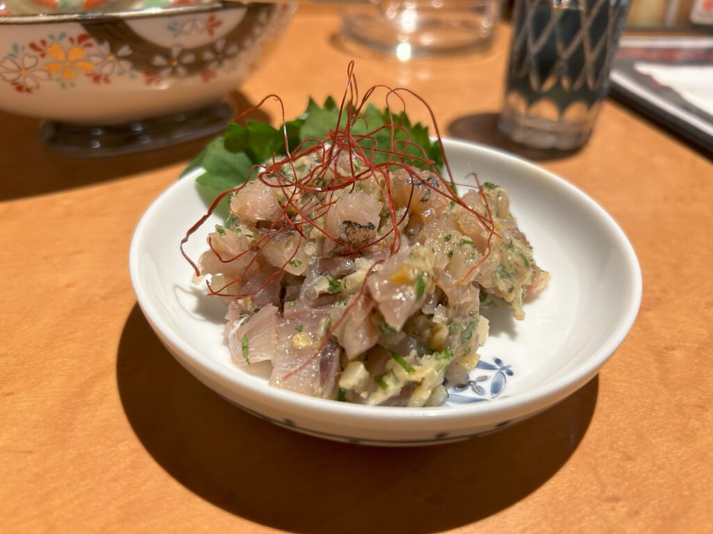 締めのお店だけど、も少し飲みたいってことで、まずはなめろうで日本酒を。