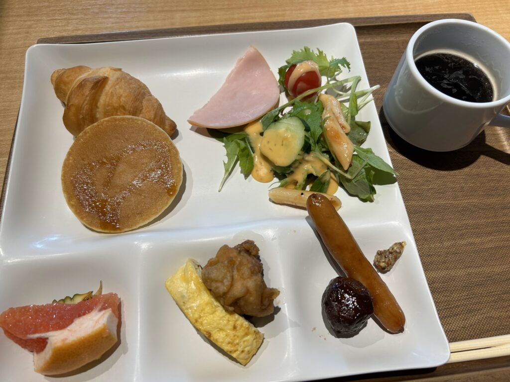 朝7時にいそいそと朝食ビュッフェへ。